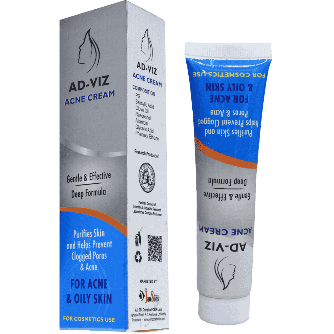 Ad-Viz Acne Cream is specially formulated to treat acne, pimples, and skin breakouts effectively. It targets the root cause of acne by controlling excess oil, unclogging pores, and calming irritated skin. With consistent use, it helps clear blemishes and prevents new breakouts, leaving your skin smooth and refreshed.